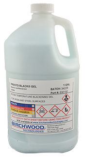 Supplied as a liquid, the Presto Black® SSB is a versatile solution that can be brushed, sprayed, or used as an immersion bath. Blackens all Stainless Steel alloys.