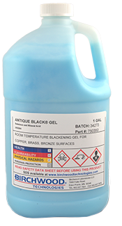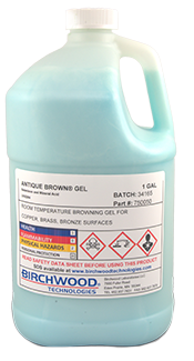 A high-strength Concentrate for browning of brass, copper, bronze. Also Blackens nickel and silver. High coverage per gallon and low operating cost.