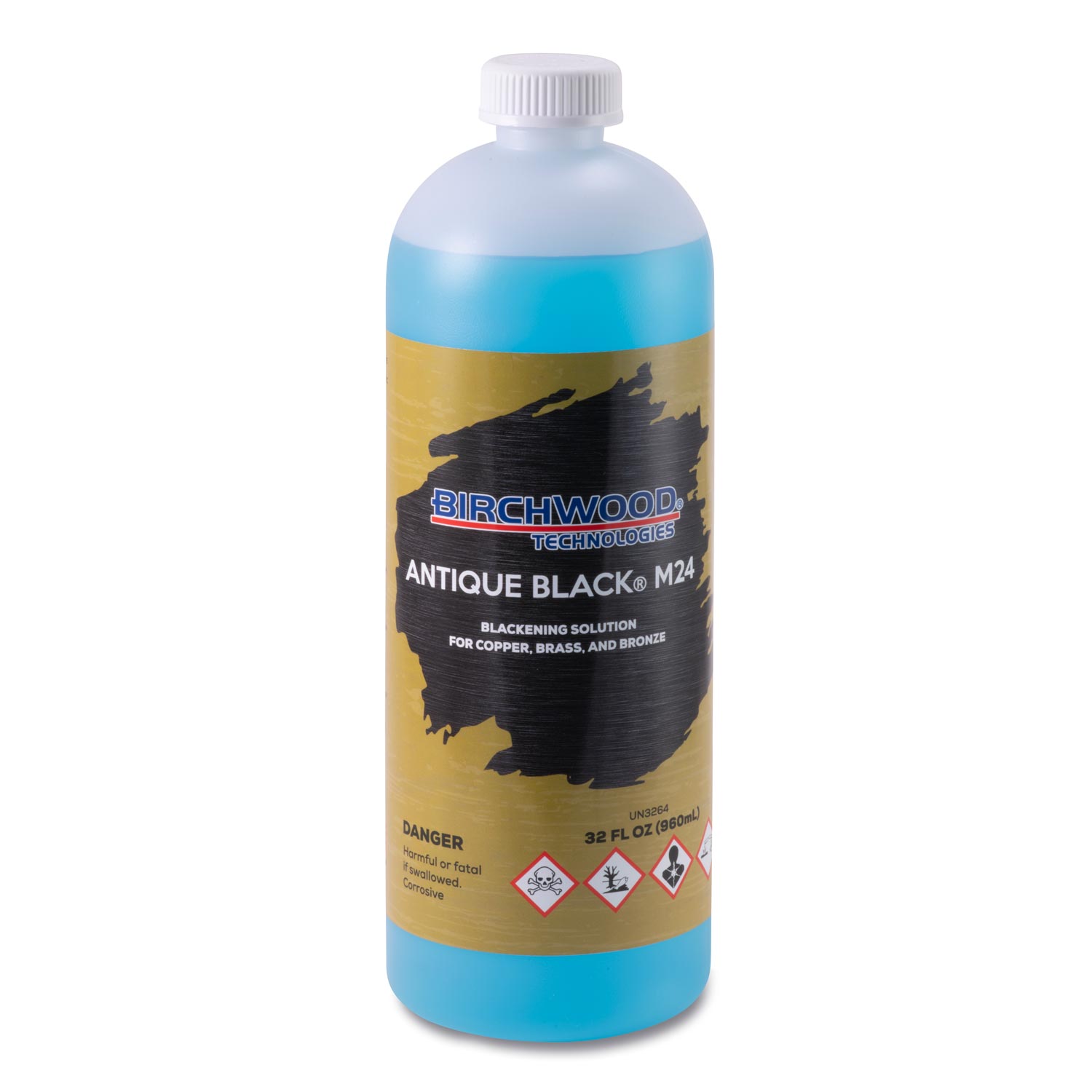 A unique Brush-On Concentrate for Blackening or browning of brass, bronze or copper alloys. Produces pleasing US10B finishes on large architectural surfaces, sculptures, or engravings -- on new or reconditioned parts. Color and reaction speed can be controlled by diluting with water. Can be used undiluted for Black finishes, or diluted by 10-50% for brown tones or slower reactions.
